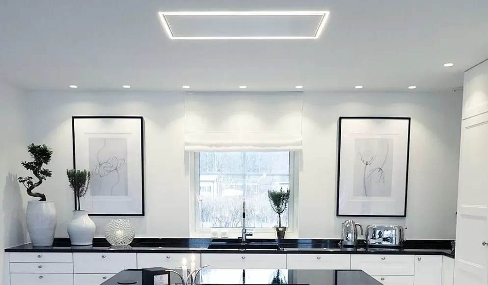 Pure -kattoliesituuletin laskeutuu tasaisesti katosta lieden yläpuolelle, jotta keittiösi olisi mahdollisimman ilmava.